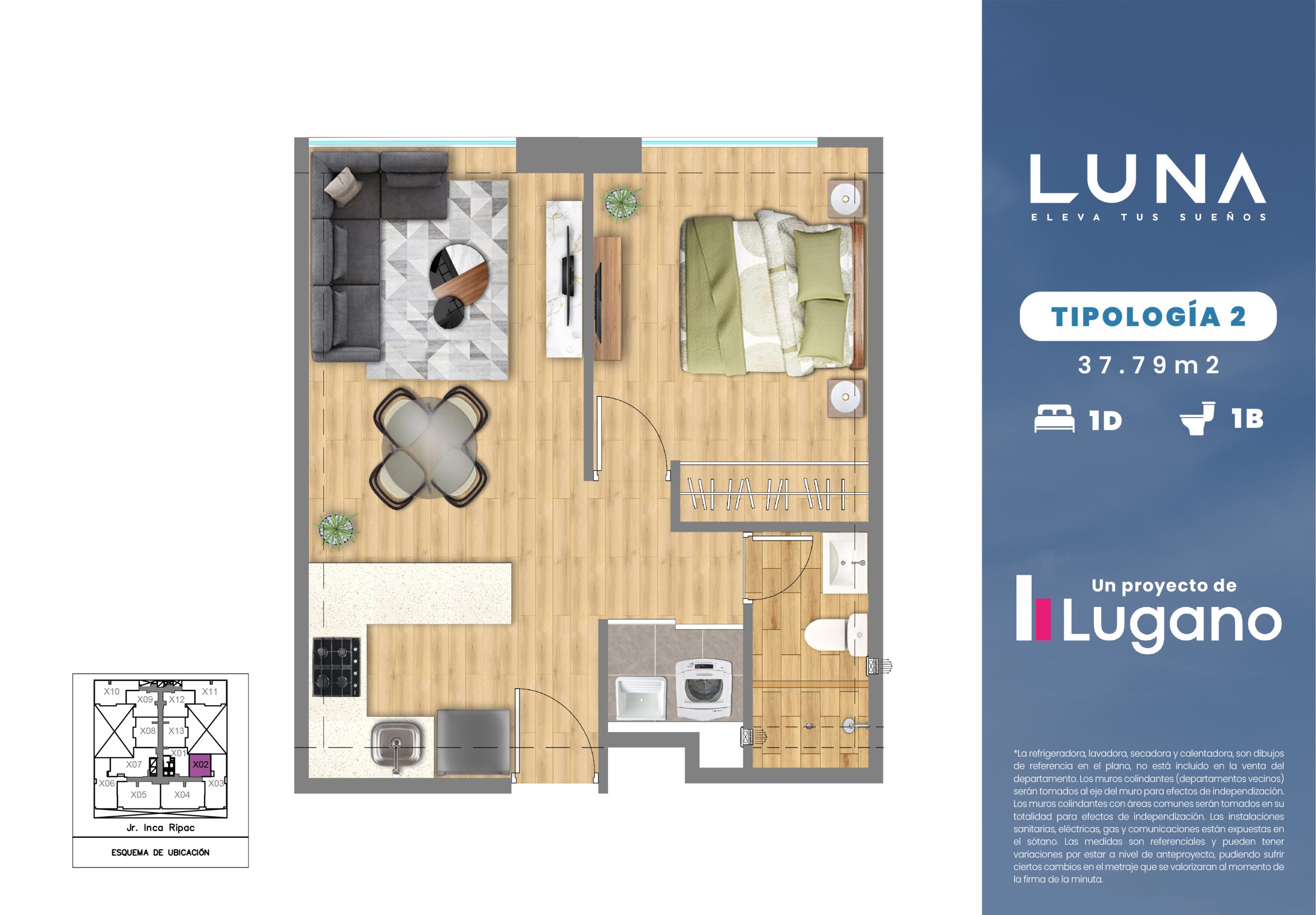 Luna es un proyecto ubicado en la mejor zona de Jesús María. Disfruta de la tranquilidad del distrito y su ubicación estratégica a pocos pasos de restaurantes, supermercados, universidades, colegios y mucho más.